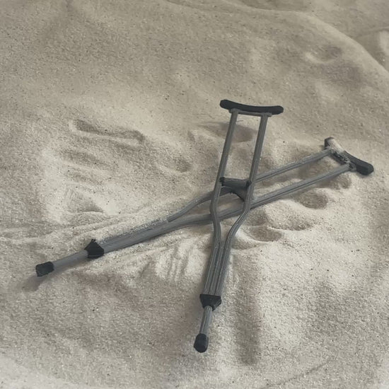 These 6.5-inch (16cm) long crutches are a perfect addition to a sand tray or sandbox to represent disability and hardship. This set comes with two crutches and are made from plastic.