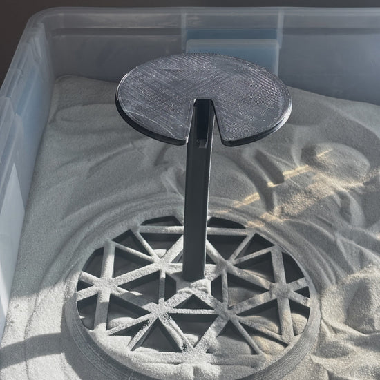 The 8.7 inch (22.2 cm) diameter base allows a client or therapist to easily dig into the sand to provide a stable platform for figurines. The height of the Skyhook Platform allows it fit a range of figurines while not taking up space on the shelf when not in use.